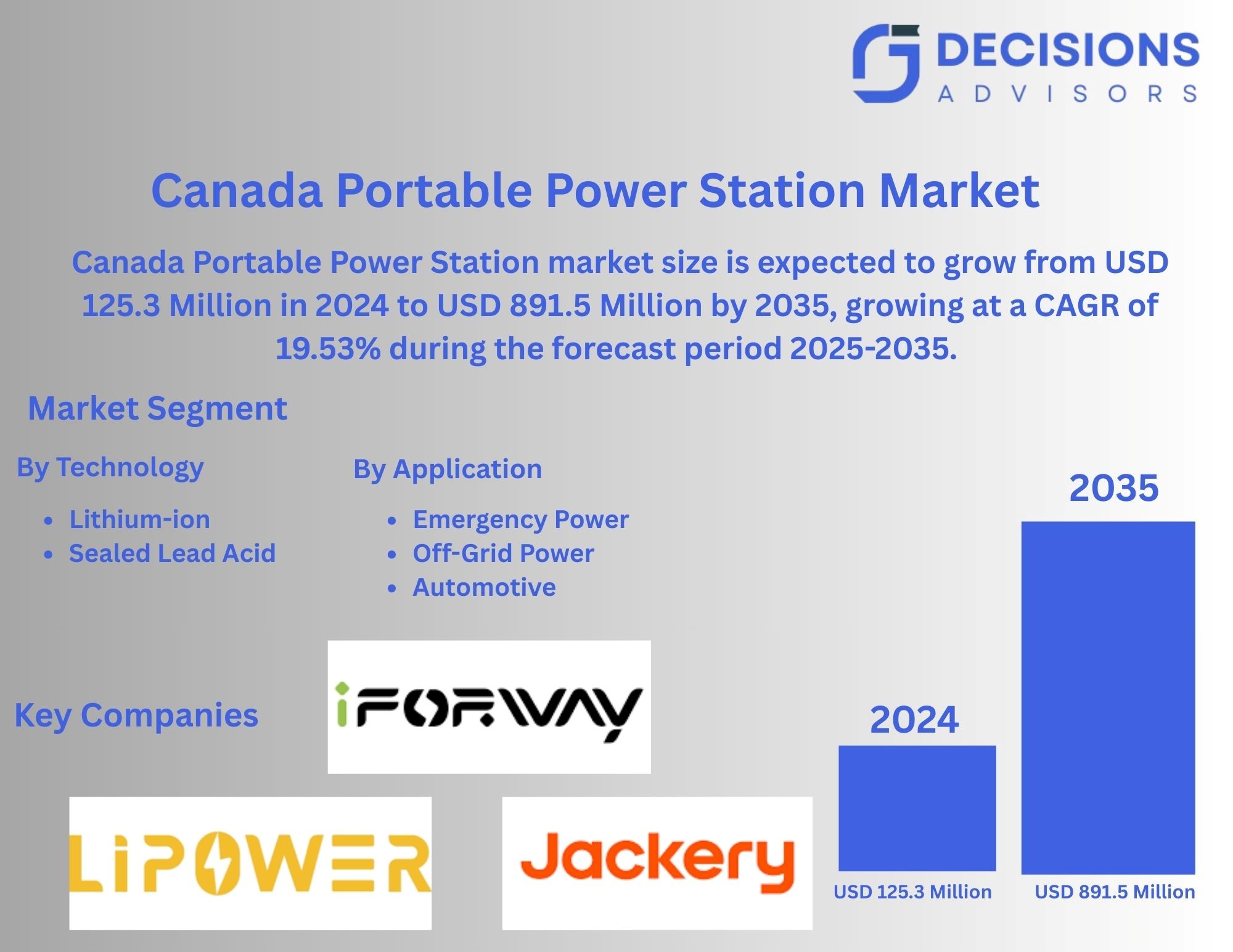 According to a research report published by Decision Advisior & Consulting, the Canada portable power station market is anticipated to hold USD 891.5 Million by 2035, growing at a CAGR of 19.53% from 2025 to 2035. Canada’s portable power station market offers strong opportunities driven by rising outdoor recreation demand, growing use in remote worksites, increasing emergency backup needs, renewable charging integration, and expanding adoption of clean, silent, and mobile power solutions.
