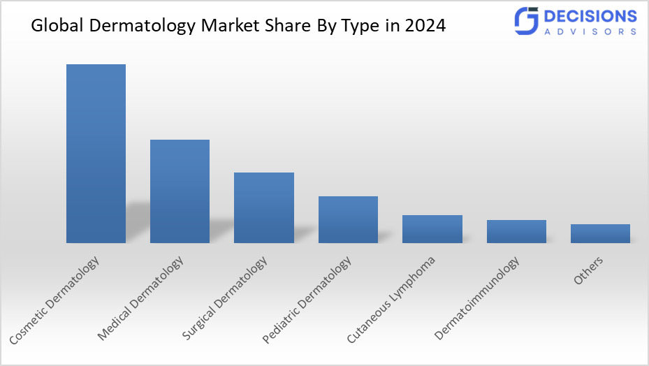 Cosmetic dermatology held the largest share in 2024 due to minimally invasive procedures like Botox and fillers.