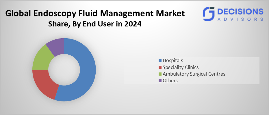 Based on the end user, the endoscopy fluid management market is segmented into hospitals, speciality clinics, ambulatory surgical centres, and others. Among these, the hospitals segment accounted for the highest revenue share in 2024 and is projected to grow at a notable CAGR over the forecast period. The hospital constitutes the biggest application segment mainly on account of its broad spectrum of medical services and the massive number of endoscopic procedures that are carried out in these institutions. These facilities are capable of complex procedures and are equipped for advanced medical care, so they are the main users of the fluid management systems. Hospitals are a centre of at, traction for the use of fluid management systems mainly because of the increasing concern about patients' safety and the rising implementation of sophisticated medical technologies.
