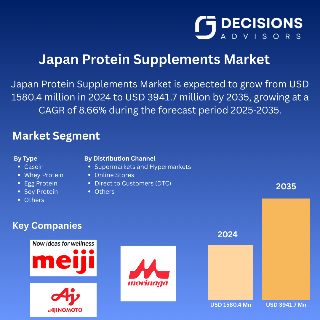 - Japan Protein Supplements Market Size 2035: USD 3941.7 Mn