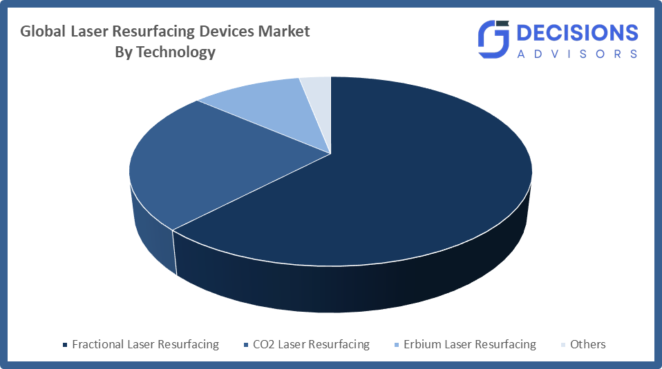 Based on the technology, the laser resurfacing devices market is divided into fractional laser resurfacing, co2 laser resurfacing, erbium laser resurfacing, and others. Among these, the fractional laser resurfacing segment accounted for the largest share in 2024 and is anticipated to grow at a significant CAGR during the forecast period. The treatment provides effective skin rejuvenation through its non-invasive approach which enables patients to recover faster and experience fewer complications. The treatment shows high potential for growth during the forecast period because it effectively treats wrinkles and scars and pigmentation issues while patients increasingly prefer procedures that require shorter recovery times.