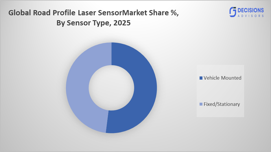 The road profile laser sensor market is segmented into Vehicle-mounted Sensors and Fixed/Stationary Sensors. By sensor type, Vehicle-mounted Sensors dominate the global road profile laser sensor market, accounting for approximately 52% of the total market share in 2026. The Vehicle-mounted segment dominated the market in 2024 and is expected to grow at a steady CAGR of around 11.2% during the forecast period. This dominance is mainly attributed to their widespread use in high-speed network surveys and large-scale highway inspections due to integrated mobility features, data collection efficiency, and suitability for a wide range of pavement management procedures.