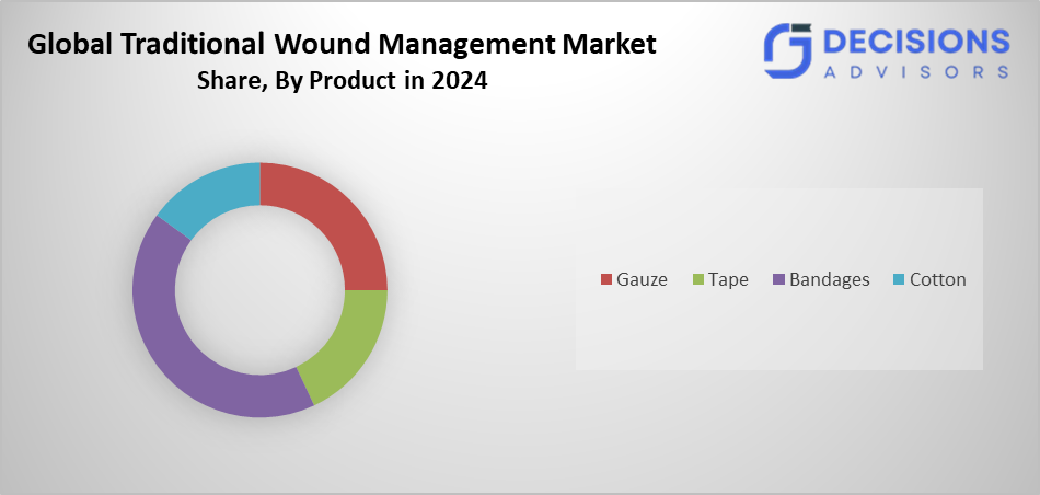 Bandages accounted for the largest share in 2024, driven by gauze bandages for acute and chronic wounds.
